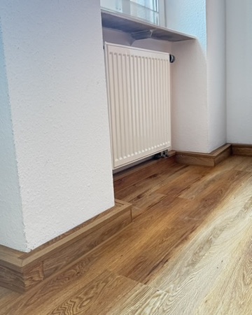 Insgesamt wurden knapp 1.000 Quadratmeter Bodenfläche erneuert. Das Projekt umfasste über 40 Hotelzimmer, vier Etagen sowie zwei Seminarräume. Ziel war es, den bestehenden Altbelag vollständig zu entfernen und durch einen modernen, belastbaren und optisch zeitlosen Boden zu ersetzen.